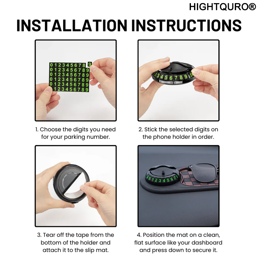 Includes 0–9 digit tiles so you can form and display your phone number for easy contact when parked. The rotatable base allows you to show or hide the number as needed for privacy.